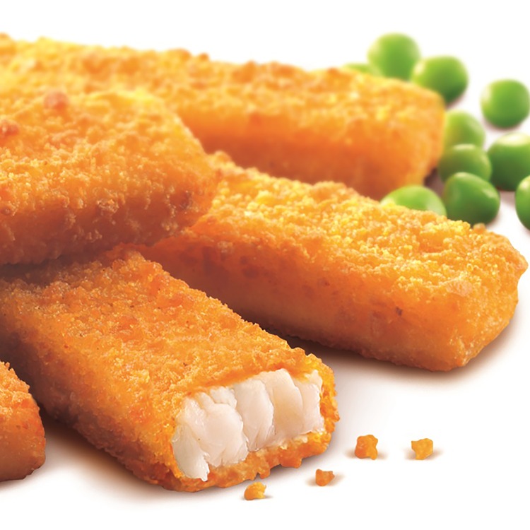 Alaskanseiti* (KALA) 58 % (*Gadus chalcogrammus*), korppujauho (VEHNÄJAUHO, vesi, mausteet (paprika, kurkuma), hiiva), rapsiöljy, vesi, VEHNÄJAUHO, perunatärkkelys, suola, KALAÖLJY (anjovis (KALA), sardiini (KALA)). *Pyydetty koilliselta tai luoteiselta Tyyneltämereltä. *Tämä tuote on peräisin kalakannasta, jonka kalastukselle riippumaton arvioija on myöntänyt MSC:n sertifikaatin hyvin hoidetusta ja kestävän kehityksen periaatteiden mukaisesta pyynnistä. www.msc.org/fi