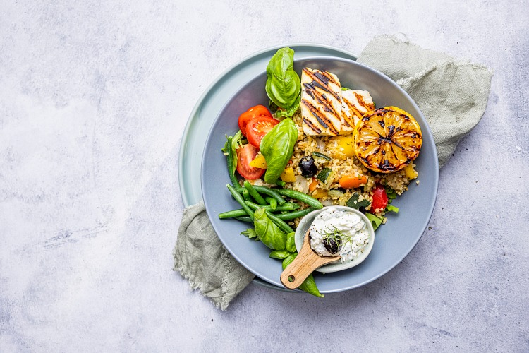 Keitetty bulguri (VEHNÄ) 33%, grillikasvikset 27 % (kesäkurpitsa, punainen paprika, tomaatti, munakoiso, sokeri, suola), porkkana, vesi, sipuli, tuorejuusto 5,3 % (MAITO, suola, mikrobinen juoksute), oliivi, persilja, suola, tomaattipyree, sitruunankuori, perunatärkkelys, kasvisjauhe (porkkana, sipuli, palsternakka), kasvisöljy (rapsi, auringonkukka), minttu, kaneli, lipstikka, kurkuma, mausteuute (valkosipuli, rosmariini).